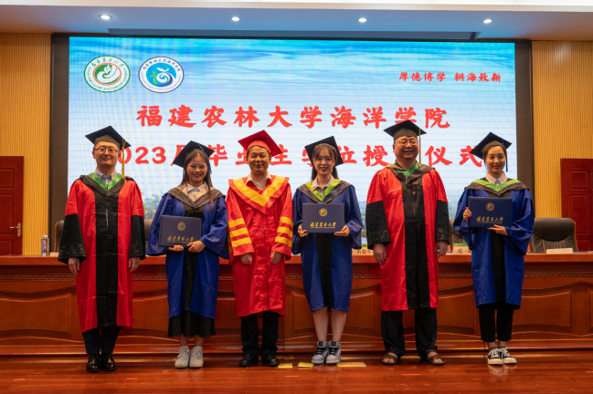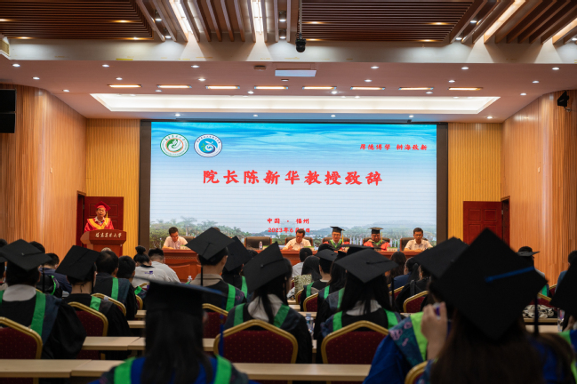 陈新华为毕业生圆满完成学业、扬帆新的航程表示热烈的祝贺和衷心的祝福,深情回溯和总结了同学们的美好大学时光和学院成立以来的发展成果,希望毕业生做有志青年,心怀国之大,情系海之蓝,自觉把个人理想同国家民族的奋斗目标统一起来,在建设海洋强国、服务乡村振兴的火热实践中实现人生价值;做有识青年,不因循守旧,应敢为人先,在想党和人民之所想、赴党和人民之所需的过程中激发创新潜能和创造活力;做有为青年,能“自找苦吃”,当拼搏奋进,在精神上不怕吃苦、在环境上不避艰苦、在现实中踏实苦干,经风雨、见世面、壮筋骨、长才干,有担当,敢作为。