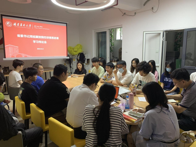 学习传达会上,学院辅导员郭炳春、刘杨青传达了思政课讲授内容,并分享了自己的感悟。郭朝晖号召大家要认真学习领会周祖翼书记思政课的讲话精神,结合近期开展的学习贯彻习近平新时代中国特色社会主义思想主题教育,深入学习贯彻习近平总书记关于建设教育强国等重要指示精神,立志做有理想、敢担当、能吃苦、肯奋斗的新时代大学生,努力为中国式现代化的福建篇章,为学院高质量发展添砖加瓦。参会的同学们纷纷表示受益匪浅,将在今后的学习、科研、工作中,将所学知识与人民所需相结合,怀抱梦想、脚踏实地,努力学习,提升本领,用智慧和汗水在新征程上逐梦前行!
