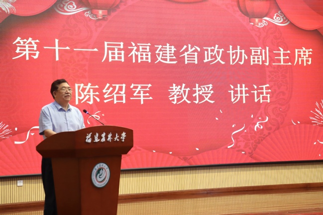 第十一届福建省政协副主席陈绍军教授对学会的成立表示祝贺,相信学会在首届理事会的带领下,必将打造一个有影响力的高水平科学研究、技术创新及产学研结合的平台,促进自主创新和技术进步,为福建食品产业的高质量发展作出应有的贡献。