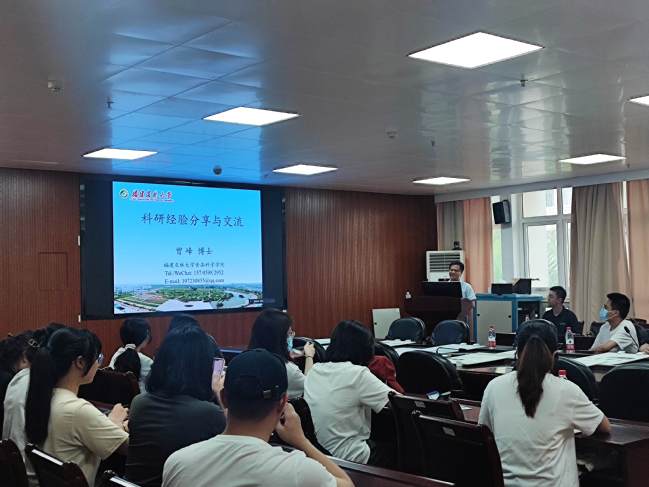 6月12日下午,食品科学学院在院办310举办第十届“食芳讲坛”学术经验交流分享会。本次会议主题为“展食科学子科研硕果,怀学术成才宏图之志”。本次会议邀请了学院“三进双师”研究生党员先锋示范“十佳研究生党支部”支部书记曾峰副教授及四位在校博、硕士生代表作为分享嘉宾,研一研二同学近60人参加此次分享会。
