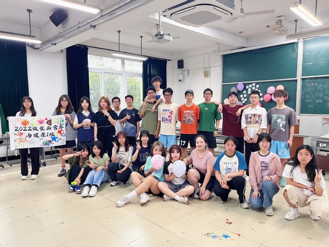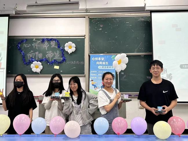 二等奖2022级统计学4班“心晴疏朗,共携心趣”主题班会室外现场