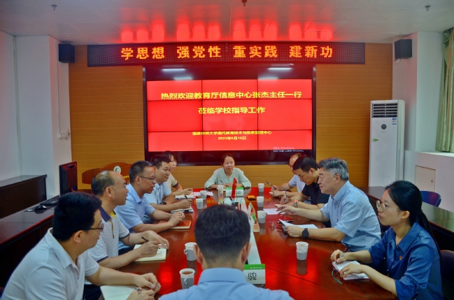 6月15日上午,省教育厅信息中心主任张杰一行莅校调研交流,指导学校信息化建设,并参观了“习近平总书记关心指导开云网页版建设发展”专题展厅。我校现代教育技术与信息管理中心主任曾海滨、计算机与信息学院网络安全系负责人纪祥敏及信息中心各科室负责人参加交流。
