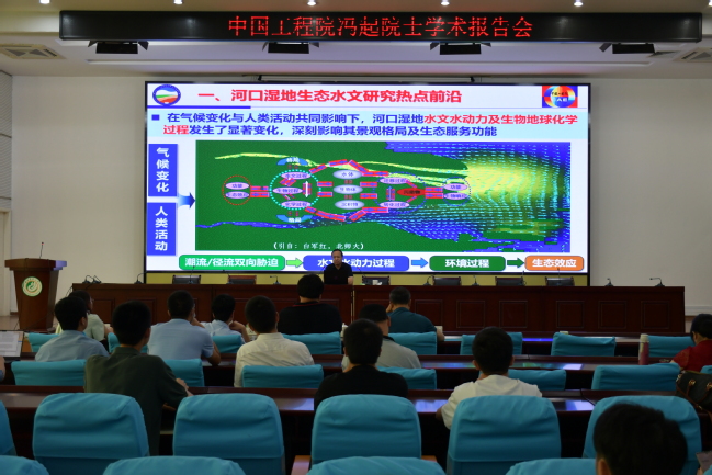会见后,冯起院士参观了海峡联合研究院,并在禧强楼学术报告厅为我校师生作了题为“河口湿地生态水文研究热点前沿及其对闽江河口湿地研究和保护的启示”主题报告。