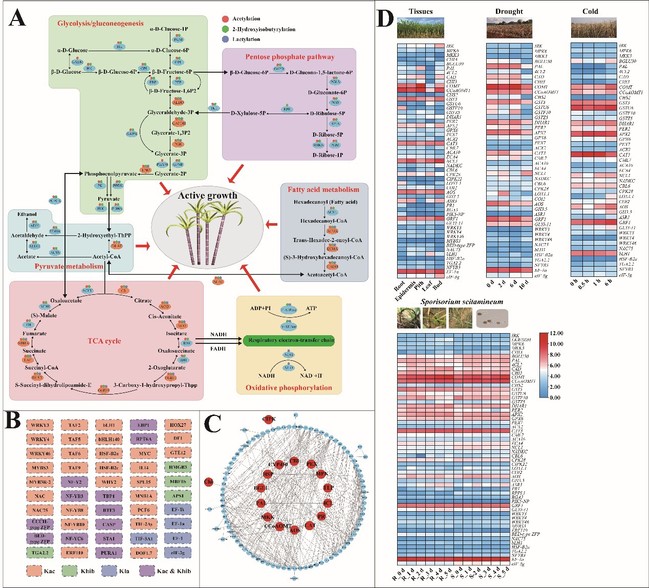 (1)在《Journal of Agricultural and Food Chemistry》发表题为“Deciphering the atlas of post-translational modification in sugarcane”的研究论文。该研究共鉴定到8573个Kac、4637个Khib和215个Kla位点,建立了首个甘蔗多维蛋白质修饰图谱。修饰蛋白的功能注释和表达模式分析结果表明,PTM在甘蔗的生长、发育和对生物和非生物胁迫的反应中起作用。以上研究提供了全新的甘蔗多维蛋白质修饰的概况,并为阐明蛋白质翻译后修饰在甘蔗中的分子机制提供了新的视角。开云网页版农业农村部甘蔗生物学与遗传育种重点实验室、国家甘蔗工程技术研究中心/农学院青年教师吴期滨为本文的第一作者,阙友雄研究员和苏亚春副研究员为共同通讯作者。