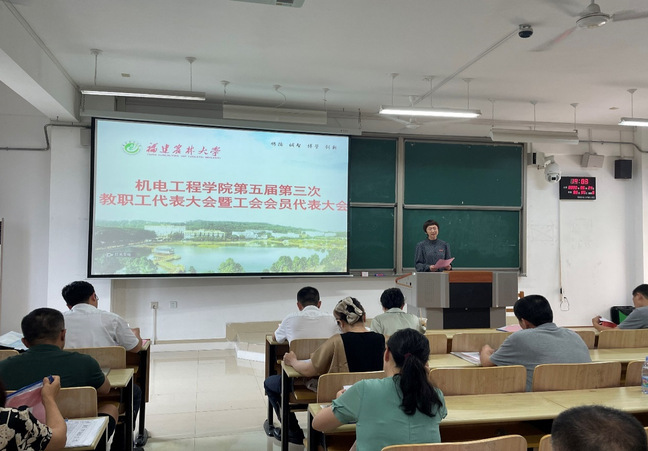 6月24日下午,机电工程学院五届三次教代会暨工代会在旗教104教室召开。学院党政领导和“双代会”代表参加会议。大会由学院工会主席曾伶主持。