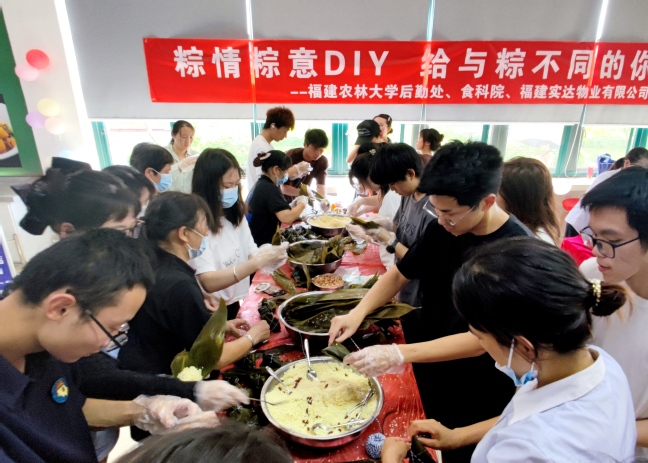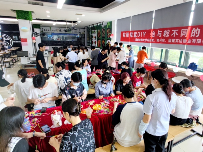 节日期间,后勤管理处分别与植物保护学院、食品科学学院、实达物业公司等联合在北区第三餐厅、南区第八餐厅举办端午节主题活动,让同学们现场动手参与包粽子、写书法、学剪纸、编织五彩绳等节日特色文化活动,在亲身体验中接受劳动教育,感受传统节日的文化魅力。此外,学校各食堂还为在校就餐的师生免费发放粽子。