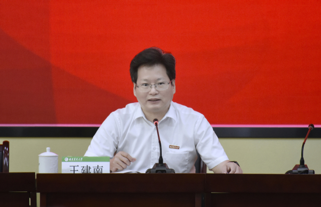 王建南强调,教育是国之大计、党之大计,在高校开展主题教育,对于深入学习贯彻习近平新时代中国特色社会主义思想,全面贯彻党的教育方针,落实立德树人根本任务,推动学校高质量发展具有重要意义。他就如何进一步开展好主题教育提出要求:一要立足忠诚学,实现以学铸魂。高校作为传播党的创新理论的重要阵地,高校党员干部要自觉做习近平新时代中国特色社会主义思想的坚定信仰者、忠实实践者,培养的学生必须成为在习近平新时代中国特色社会主义思想指引下成长的时代新人。我们要善用独特资源建设“大思政课”,深入实施好“时代新人铸魂工程”,推动师生坚定拥护“两个确立”,坚决做到“两个维护”。二要带着问题学,实现以学增智。领导干部对学校情况了解比较多,但越熟悉情况,越要克服惯性思维和路径依赖。要坚持问题导向,眼睛向下,经常到师生中面对面听取意见建议,准确了解师生的所思所想、所需所盼。要多用“四不两直”方式,到教学科研、管理服务等工作一线掌握实情、找准问题,把好事实事做到师生心坎上,让师生真切感受到主题教育的实际成效。三要对着整改学,实现以学正风。紧密结合新形势新任务新要求,把学、查、改有机贯通起来,全面查找自身不足和工作偏差,发扬斗争精神,敢于动真碰硬。要大兴务实之风,弘扬清廉之风,养成俭朴之风,不唯上、不唯私,工作中遇到问题多想想如何创造性转化、创新性发展。要持续加强内部治理体系和治理能力建设,一体构建不想腐、不敢腐、不能腐机制。四要承载使命学,实现以学促干。要深入开展探源学习,深刻感悟思想伟力,深化汲取真理力量,牢记嘱托,感恩奋进,加快推进学校“四个基地”建设。要深化改革创新,大力推进新兴学科、交叉学科建设,努力实现换道超车、争先进位,为建设农林特色鲜明的全国一流大学而团结奋斗。