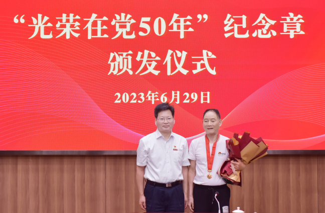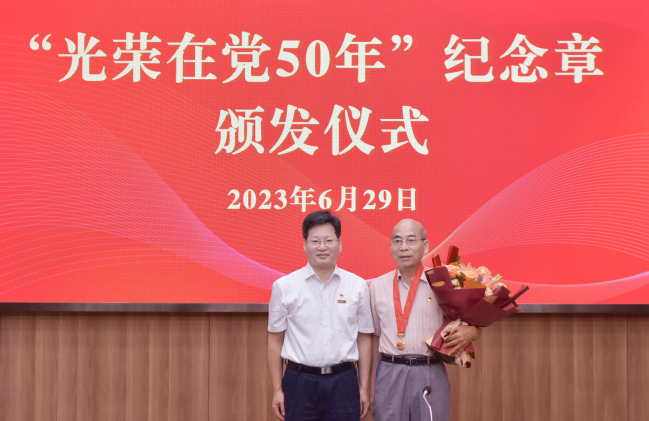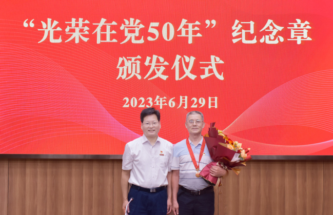 6月29日上午,我校在明德楼武夷厅举行“光荣在党50年”纪念章颁发仪式,为党龄达到50年的老党员集中颁发“光荣在党50年”纪念章。校党委书记王建南、党委副书记陈世奎,“光荣在党50年”老党员代表出席。颁发仪式由陈世奎主持。