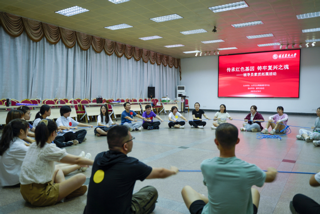 为进一步加强辅导员队伍建设,激发政工队伍新活力,凝聚干事创业精气神,6月27日上午,“传承红色基因 铸牢复兴之魂”——辅导员素质拓展活动在百悟讲坛开展,二十多名政工干部现场参与,大学生心理健康指导中心教师李娟担任本次素拓活动带领者。