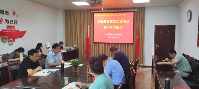 6月30日,公共管理与法学院党委书记曾起郁主持召开学院学习贯彻习近平新时代中国特色社会主义思想主题教育第三次读书班集中学习研讨会,专题学习习近平总书记对党的建设和组织工作作出的重要指示精神和习近平总书记关于全面从严治党、推进自我革命的重要论述精神,学院党委班子成员、教工党支部书记、辅导员参加学习。