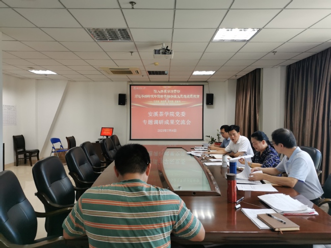 7月4日上午,安溪茶学院(数字经济学院)召开学院领导班子学习贯彻习近平新时代中国特色社会主义思想主题教育专题调研成果交流会。会议由学院党委副书记(主持工作)黄成茂主持,学院领导班子成员参加了会议。