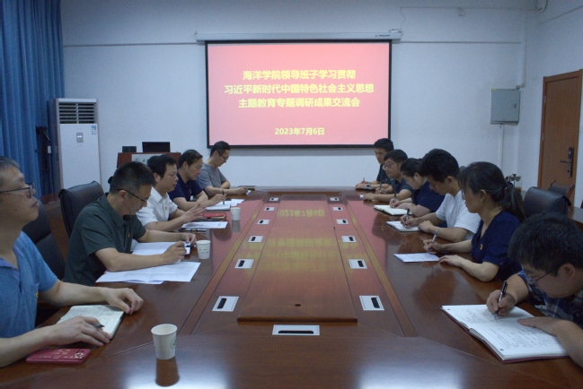 7月6日上午,海洋学院党委在学院会议室召开领导班子主题教育专题调研成果交流会。学院领导班子成员、党支部书记、教学系负责人、科级干部、辅导员等参加。会议由学院党委书记黄毅军主持。