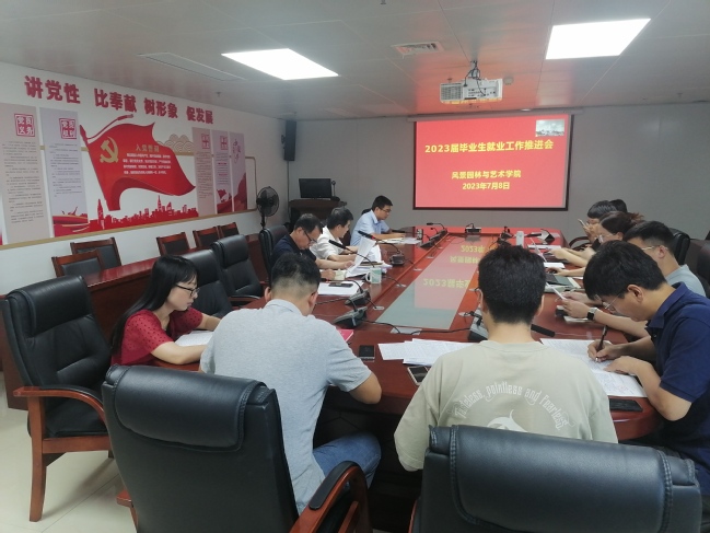 7月8日上午,风景园林与艺术学院于旗山综合楼1102-4会议室召开2023届毕业生就业创业工作推进会。会议采取线上线下相结合的方式进行,学院党政领导、各系主任、研究生导师、班主任、毕业班辅导员及全体教职工参加。会议由学院党委书记雷国铨主持。