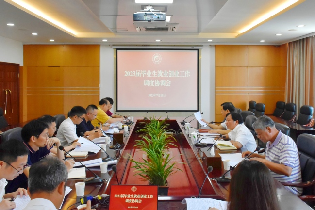 7月10日上午,我校在明德楼第二会议室召开2023届毕业生就业创业工作调度会,通报毕业生就业创业工作进展情况,对下一步工作重点进行再强调、再推进。校长兰思仁出席会议并讲话,校党委副书记曾华平主持会议。