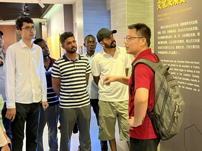 在全国唯一的寿山石专题国有博物馆——中国寿山石馆,留学生们走近感受题材丰富的寿山石文化、寿山石原石、寿山石名家名雕精品等,了解寿山石1500多年的发展史,寿山石的形成、开采及种类,一睹寿山石名雕传世精品的风采。