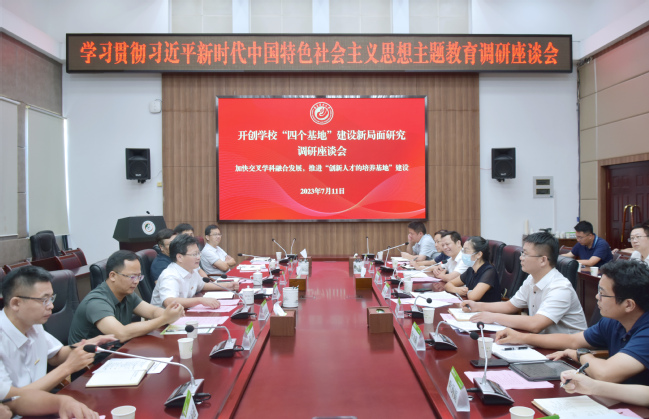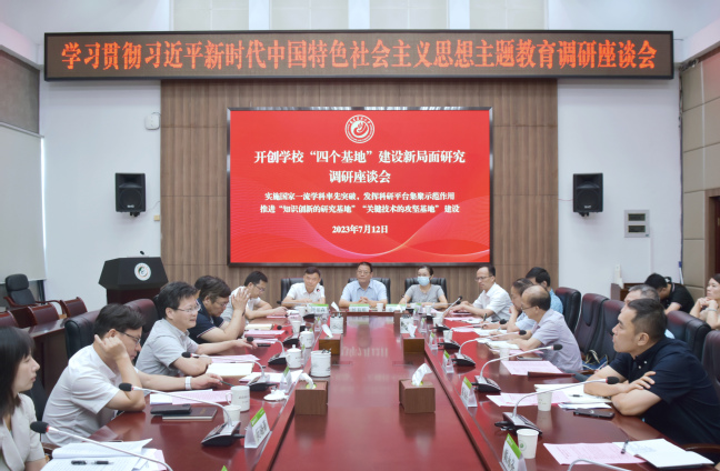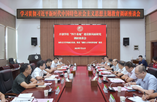 7月11日至12日,校党委书记、校党委主题教育领导小组组长王建南围绕承担的“开创学校‘四个基地’建设新局面研究”主题教育专项课题,连续召开多场调研座谈会,认真听取相关单位负责人在推进学科交叉融合、创新人才培养、建设一流学科和加强平台建设等方面的做法成效、存在问题和意见建议,剖析问题、总结经验、提出对策、明确方向,推动主题教育走深走实。副校长唐振鹏、周顺桂参加调研座谈会。