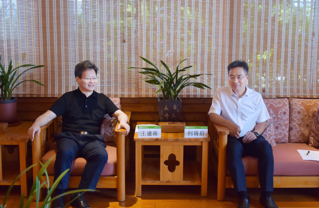 王建南代表学校对何将启一行的到来表示欢迎。他指出,经过前期双方友好交流、深入磋商,初步达成了共识,形成了合作方案。他希望,双方进一步开拓思路、深化对接,以安溪校区茶园光伏建设为试点,推动平台、产业、人才、学科等资源要素深度融合、高效联动,积极探索新能源+智慧农业创新发展新模式,助推我省绿色发展。要进一步发挥双方优势,促进新能源领域学科协同创新,在生物质能源开发、“双碳”研究等领域加强合作,通过联合申报课题、共建碳中和研究院等形式,推动产学研用融合,共同为实现“双碳”目标贡献力量。