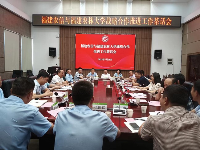7月25日上午,我校与福建省农村信用社联合社战略合作推进工作茶话会在明德楼武夷厅召开。福建省农村信用社联合社人力资源部总经理苏丕雄等一行人来校交流。这是校企双方落实战略合作任务的机制性活动之一。会议由副校长唐振鹏主持。
