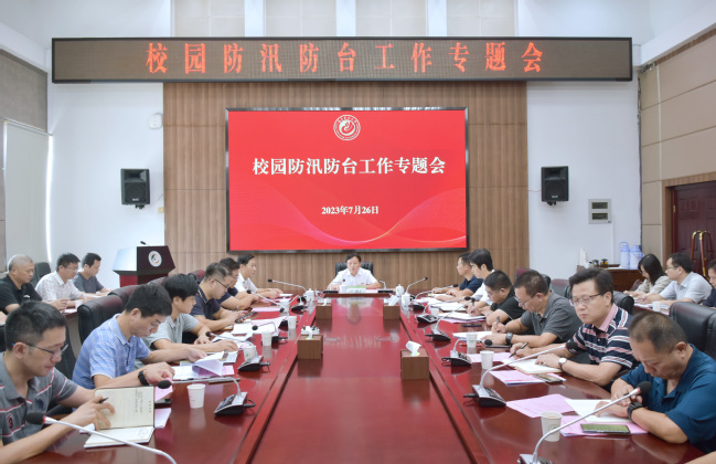 7月26日下午,我校在明德楼武夷厅召开校园防汛防台工作专题会议,传达上级有关会议和文件精神,研判台风“杜苏芮”发展趋势和影响,对学校防汛防台工作进行全面安排部署。校长兰思仁主持会议并讲话。校党委副书记陈世奎、曾华平,副校长郑宝东(线上)、林庆藩、唐振鹏出席会议。