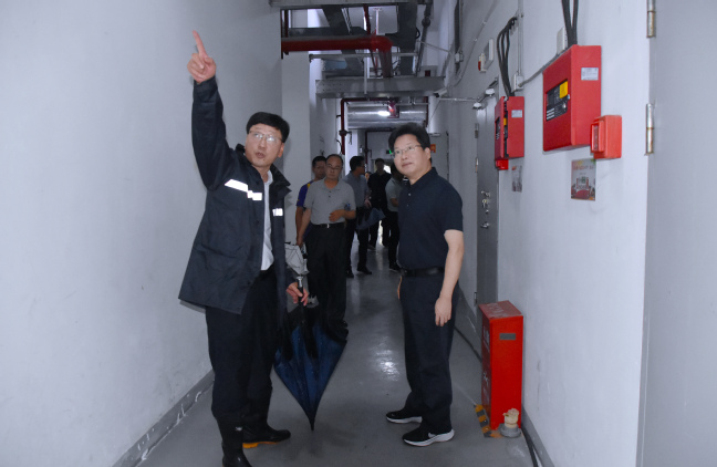 王建南、唐振鹏实地检查了旗山校区综合楼地下室、应急物资准备、配电房、储物室等,并就存在的问题提出具体意见。