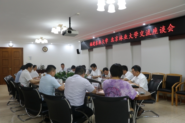 7月25日上午,校党委书记王建南、校长兰思仁、副校长周顺桂一行前往北京林业大学调研。北京林业大学校长安黎哲、党委副书记谢学文、副校长李雄会见调研团一行并座谈交流。