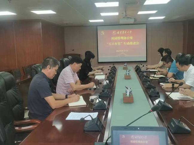 8月1日上午,校园管理办公室在综合楼310室召开“百日攻坚”行动项目推进会。会议由校园办主任陈毅主持,校园办全体人员参加。