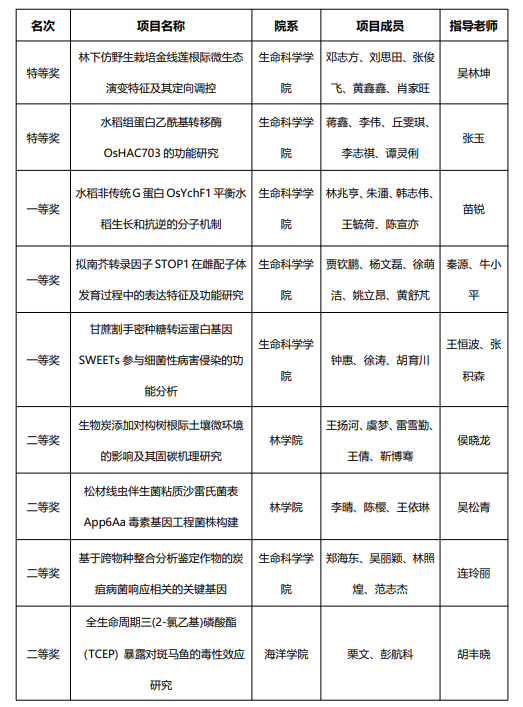 第八届全国大学生生命科学竞赛(科学探究类)福建赛区决赛近日落下帷幕,我校参赛团队在此次比赛中表现出色,夺得特等奖2项,一等奖3项,二等奖4项,三等奖12项。