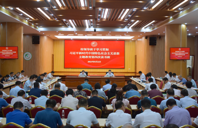 王建南指出,主题教育开展以来,校党委深入学习贯彻习近平总书记关于主题教育系列重要讲话和重要指示批示精神,按照省委、省委教育工委的部署要求,坚决扛起政治责任,坚持问题导向,对标对表检视,找准抓实整改,取得良好成效。一是坚持以上率下,在抓检视上下功夫。把检视整改作为主题教育以学促干、见行见效的重要抓手,共检视梳理出解决师生“急难愁盼”问题和影响学校发展存在的突出问题8项,制定整改措施27条。二是坚持攻坚克难,在当下改上下功夫。围绕金山校区教职工危旧房安全问题、师生电动自行车充电不方便不安全问题、运动场地不足问题、科研资源共享不足的问题等,切实解决一批师生反映强烈的问题。三是坚持建章立制,在长久立上下功夫。把检视整改和建章立制贯通起来,研究制定了《专业技术职务评聘实施方案》《社会服务平台管理办法》等一批管长远、固根本的长效机制。