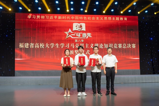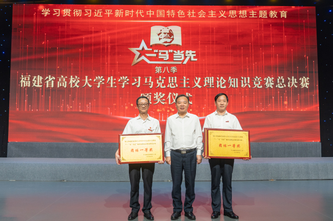 8月15日,由中共福建省委教育工委主办,福建省高校思想政治理论课教学指导委员会、福建教育电视台承办的第八季福建省高校大学生学习马克思主义理论“一‘马’当先”知识竞赛总决赛落下帷幕。省委常委、宣传部部长张彦莅临总决赛现场并为获奖选手颁奖。我校党委副书记曾华平出席活动。