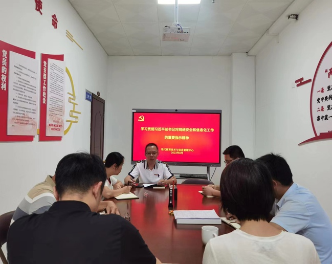 近日,信息中心召开专题会议,学习贯彻习近平总书记对网络安全和信息化工作的重要指示精神,研究部署学习宣传贯彻措施。信息中心主任曾海滨主持会议。