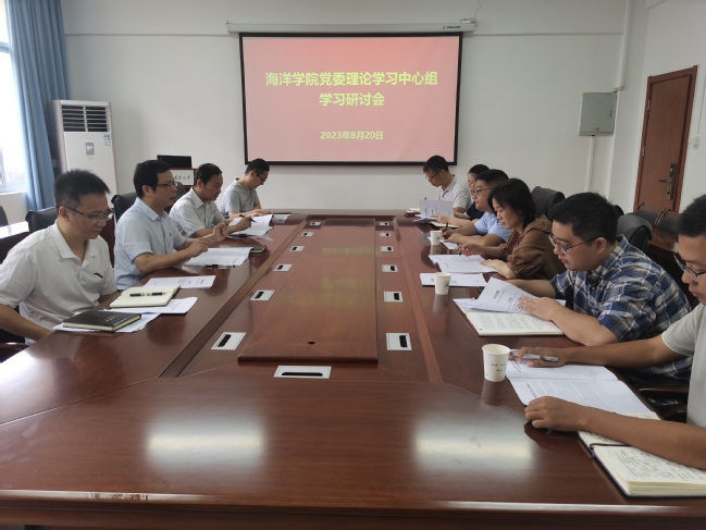 8月20日上午,海洋学院党委在学院会议室召开理论学习中心组专题学习研讨会。学院领导班子成员、党支部书记、教学系负责人、科级干部等参加。会议由学院党委书记黄毅军主持。
