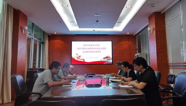 8月21日下午,图书馆党委在逸夫图书馆四楼会议室开展学习贯彻习近平新时代中国特色社会主义思想主题教育第四次读书班集中学习研讨,图书馆党委理论学习中心组成员参加会议。会议由图书馆党委书记陈月霄主持。