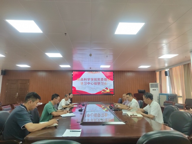 8月23日,食品科学学院党委召开理论学习中心组学习会,学院领导班子成员参加会议,学院党委书记苏健涵主持会议。