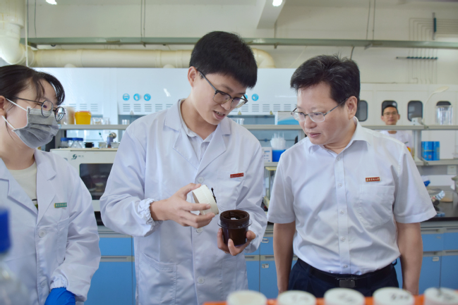 8月23日上午,校党委书记王建南前往旗山校区生物质基功能材料研究中心调研,看望暑期坚持在一线工作的科研人员。校园办和材料工程学院相关负责人陪同调研。