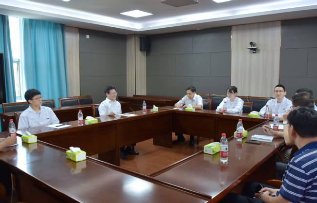 在中心实验室,王建南实地查看了实验条件设施和工作环境,听取了帅李教授团队和学院关于科研进展情况的汇报,并与科研人员亲切交流。