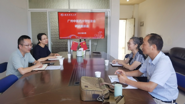 8月24日上午,广州中医药大学校友会秘书长简福爱、副秘书长任长报来校调研交流。校统战部副部长李梅生及校友会基金会工作人员参加了座谈交流。
