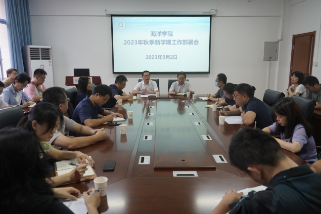 9月2日上午,海洋学院在501会议室召开2023年秋季新学期工作部署会。学院全体教师参加,会议由学院党委书记黄毅军主持。