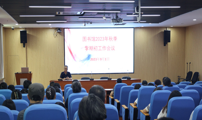 9月1日下午,图书馆在逸夫馆二楼视听阅览室召开政治理论学习会暨2023年秋季学期开学部署会,全体教职工参加。