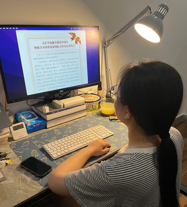 2022级生态学博士研究生宋思梦表示,习近平总书记的贺信充分展现了中国对可持续发展和人类命运共同体的重视。这两年我们有幸加入到“菌草铁军”并驻扎在内蒙古黄河流域最艰苦的地段,用菌草技术防沙治沙、固岸护坡,筑起黄河边绿色生态安全屏障,用“幸福草”捍卫黄河“幸福河”!同时菌草技术也帮助不同肤色、不同国别、不同语言的朋友们守护生态、粮食、能源安全,提高经济、社会、环境效益,对此我深感幸福与荣光。