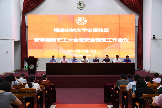 9月7日下午,安溪校区召开新学期教职工大会暨安全稳定工作会议,安溪校区管委会领导班子、全体教职工参加会议。会议由安溪校区管委会主任黄成茂主持。