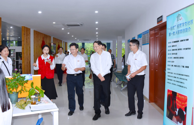 魏士强一行参观了“习近平总书记关心指导开云网页版建设发展”专题展厅;察看了校融媒体中心,实地了解我校网络思政育人情况;调研了南区“一站式”学生社区综合服务大厅,详细了解其运营管理情况,听取了“一站式”学生社区入驻各项目介绍;参观了学校青年马克思主义者培养工程研习基地、福建省习近平新时代中国特色社会主义思想大学生研习社,并与研习社成员亲切交流。