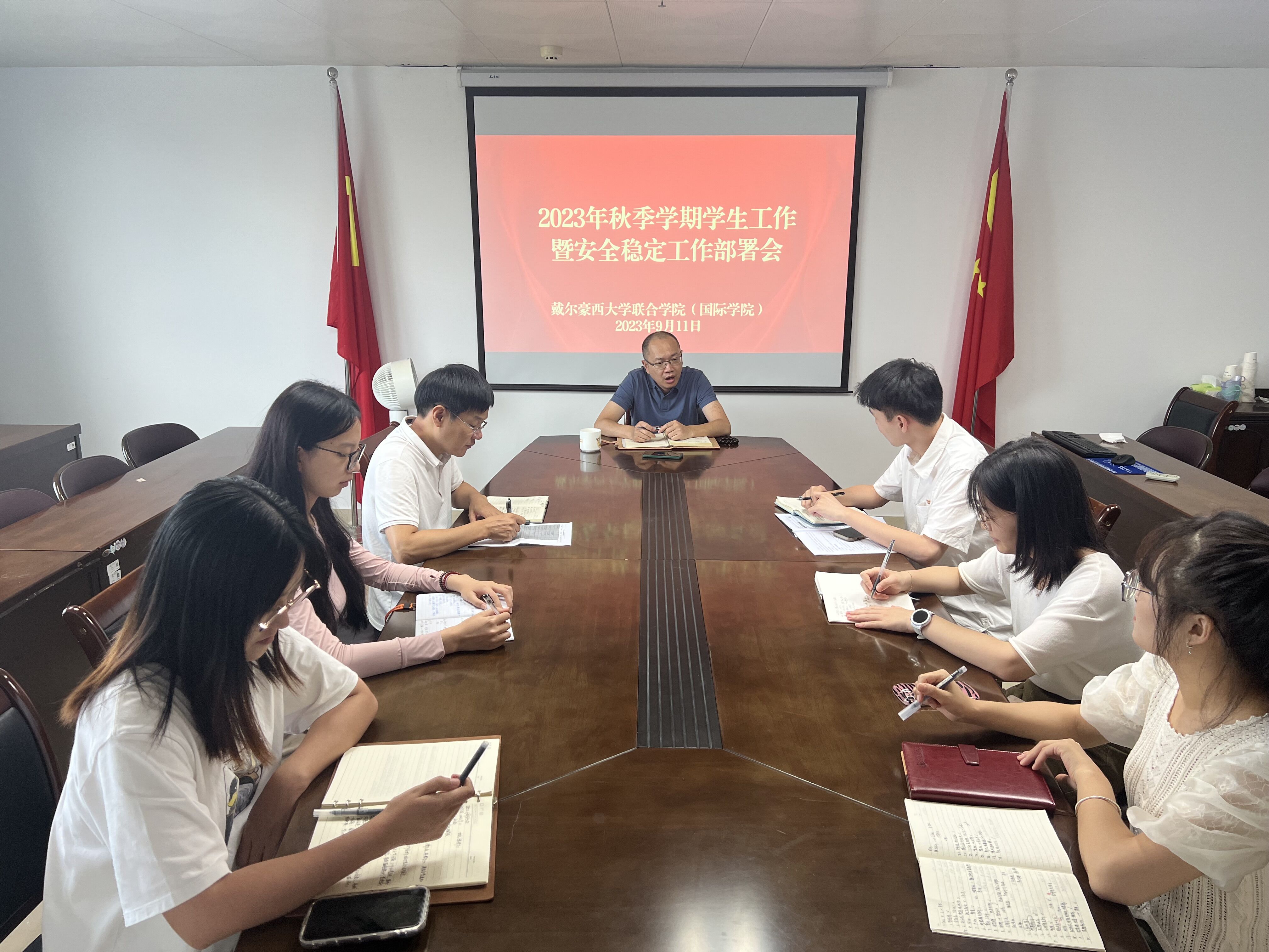 9月11日,国际学院于旗山综合楼901召开秋季学期学生工作暨安全稳定工作部署会,传达学校2023年秋季学期开学部署会会议精神,研究2023级新生入学报到工作。会议由学院党委副书记刘敏主持,全体辅导员参加会议。