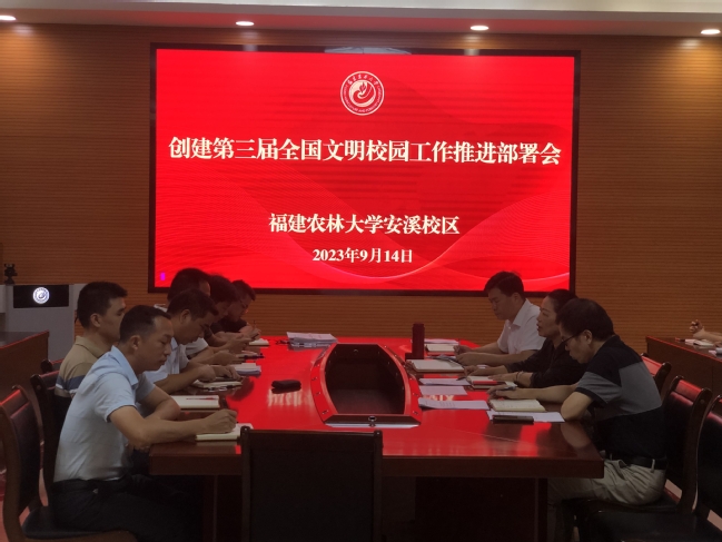 9月14日上午,安溪校区召开创建第三届全国文明校园工作推进部署会,会议由校区管委会主任黄成茂主持,校区管委会领导班子成员、各部门负责人、党支部书记参加会议。