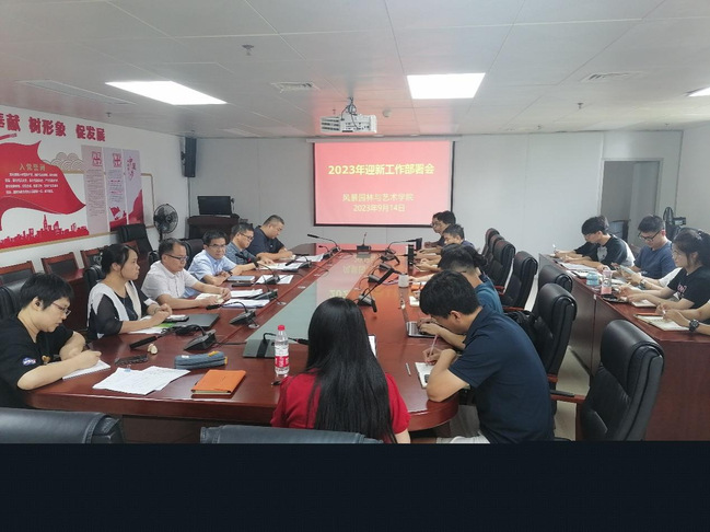 9月14日下午,风景园林与艺术学院在综合楼1102-4会议室召开2023年迎新工作部署会,推进落实迎新各项工作。院党委书记雷国铨、副院长(主持工作)彭东辉、院党委副书记陈建辉、以及各系主任、辅导员出席会议。会议由雷国铨主持。