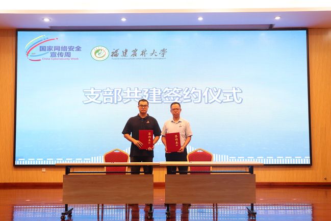 为推进党建与思政工作守正创新“八大工程”建设,进一步拓宽党建工作思路,发挥党建引领作用,提升基层党建水平,9月12日上午,以2023年国家网络安全宣传周为契机,在校第二届网络安全宣传周开幕式上,网络与信息中心教工党支部与计算机与信息学院网络空间安全专业学生党支部举行了支部共建签约仪式。计算机与信息学院党委书记钟一文,信息中心主任、网络与信息中心教工党支部书记曾海滨,计算机与信息学院副院长鲍玲鑫出席签约仪式。仪式由学院党委副书记张明辉主持。