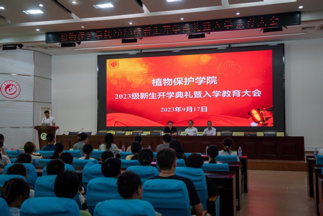 9月17日下午,植物保护学院2023级新生开学典礼暨入学教育大会在禧强楼学术报告厅举行。学院党政领导班子成员、2023级新生班主任、2023级全体新生、全体辅导员、教师代表、新生家长代表、在校生代表出席典礼。典礼由学院党委副书记陈文滨主持。