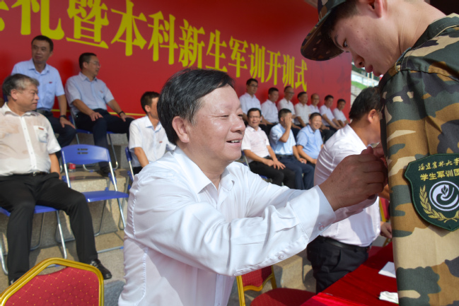 典礼上,校领导郑重地为新生代表戴上校徽,希望新生们肩负强农兴农使命,牢记嘱托,感恩奋进。