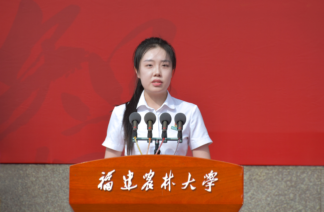 风景园林与艺术学院硕士研究生刘家邑和农学院本科生曾恺翔作为新生代表先后发言,表达对人生新起点的自信与期待,表示将练就过硬本领,将小我滴水融入时代洪流,用奋斗擦亮青春底色。