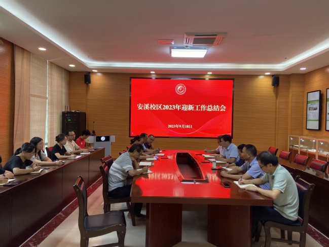 9月18日下午,安溪校区召开2023年迎新工作总结会,会议由校区管委会主任黄成茂主持,校区管委会领导班子成员、各部门负责人、政工干部参加会议。
