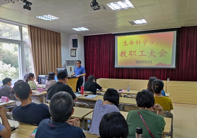 9月15日下午,生命科学学院在生科楼414召开教职工大会暨新学期工作会议。学院全体教职工参加,会议由学院党委副书记刘强主持。